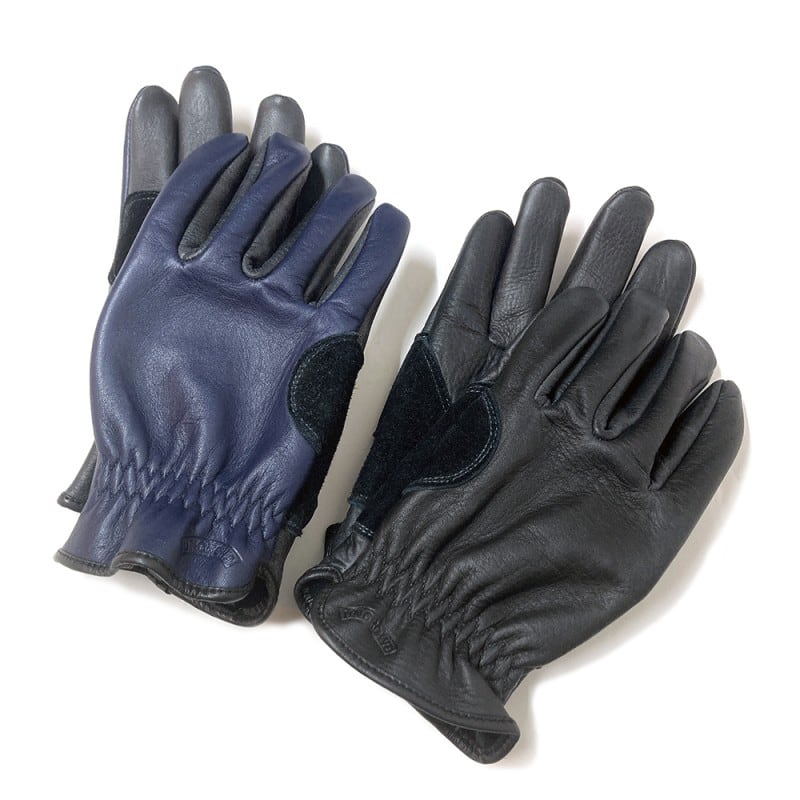 今回の別注ではライディング用にパターンを見直し、アメリカ産牛革とケブラー糸によるグローブは、大変強靭ながら一度使用すると直ぐに手に馴染み、オンリーワンのフィット感に生まれ変わる仕様となっています。