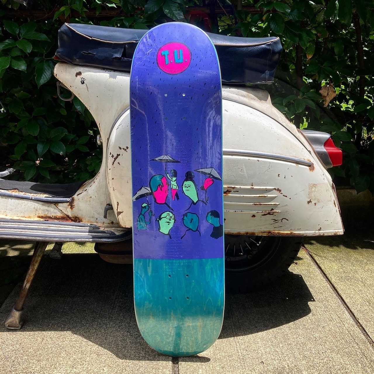 アメリカ・スケート界の裏方として知る人ぞ知るキーパーソン的人物!!"RUSS POPES"現在はコンバース社で働きながらアーティスト活動とこのTRANSPORTATION UNIT というスケートブランドを自身で運営!!この方の描くモノ全て、抜け感がありほっこり&ポップで何と言ってもPEACE感が滲み出ている作風が最高です!!