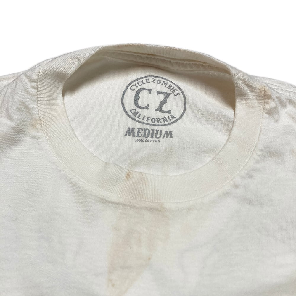今や世界のチョッパーシーンの中心的アイコン"CYCLE ZOMBIES FAMILY" 世界的なモーターサイクルメーカーのロゴを大胆にサンプリングした1枚(^^)!!今回のボディーは手の込んだ古着加工を施し雰囲気アリアリでオススメです!!