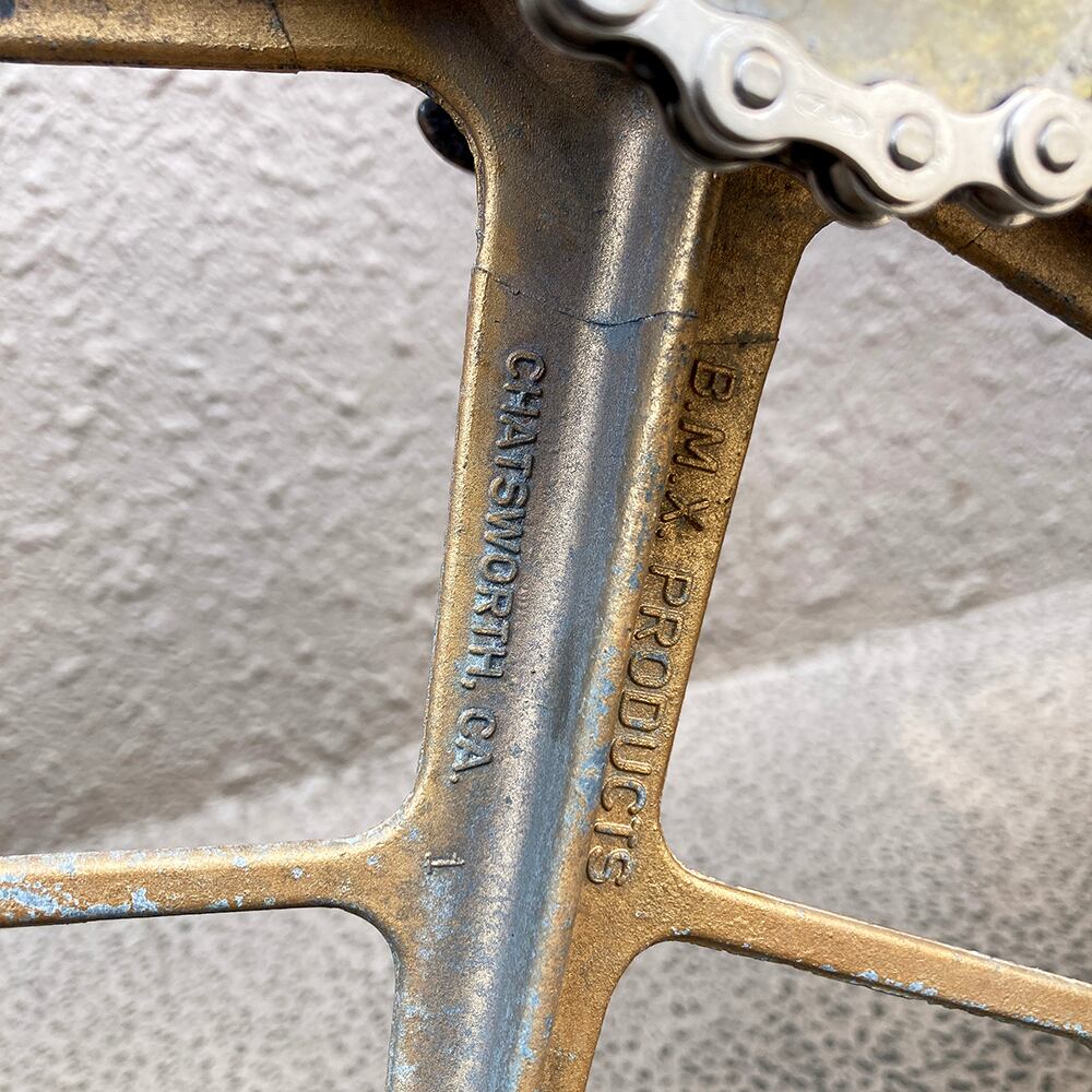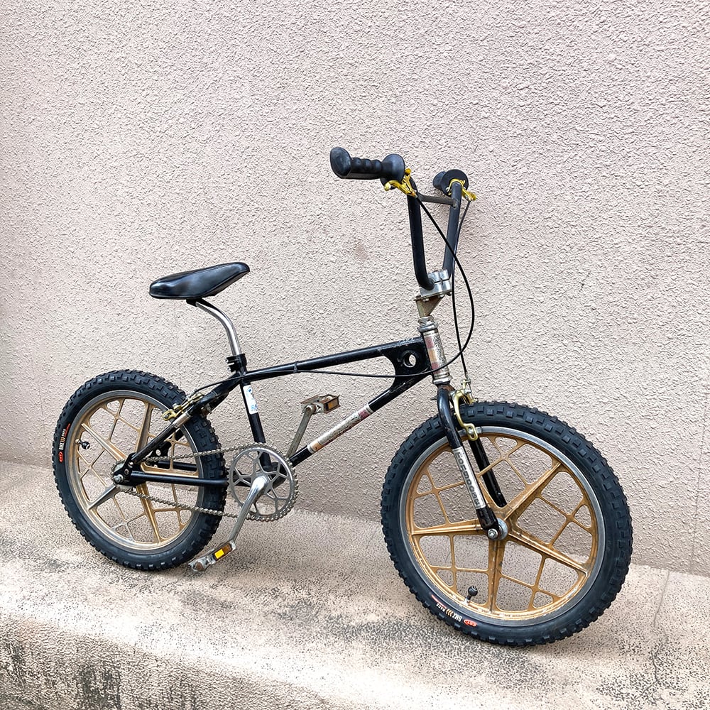80's "MOTOMAG 2" 20inc BMX が整備を終えて入荷しました!!MOTOMAGと言えば超メジャーBMXブランド "MONGOOSE" の代表的な車輌!!一番の特徴が足廻りですよね(^^)この鋳物で出来た "SNOW FLAKE MAG WHEEL" (^^)V このホイールがたまりません!!ホイール単体で価値があるレアな1台!!見ての通り所々に錆や塗装の剥がれなど見られますが、各部しっかりとメンテしたので車輌的にはグッドコンディションです。リアルに日常使いを考慮してオリジナルのストレートシートポストからNITTOのレイドバッグシートポストに変更!!コレで窮屈なポジションからおさらば(笑)ちょっとヤレた外装と楽なポジションで気を使わず日常使いが出来ますね。愛車の屋根にキャリアを乗っけてぜひ本物のBMXを積んで走り回って欲しいなぁ〜(^^)めっちゃオススメです!!